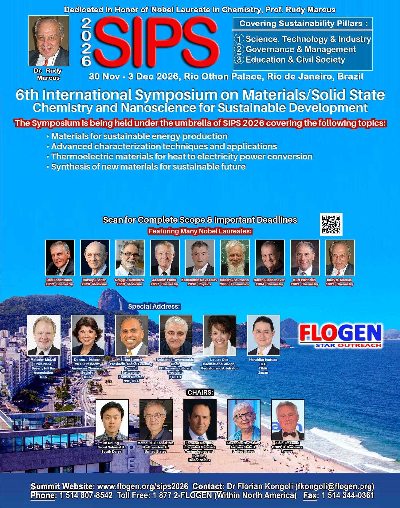 Click here to submit an abstract and choose 6th Intl. Symp. on Materials/Solid State Chemistry and Nanoscience for Sustainable Development in the list: https://www.flogen.org/sips2026/abstract_submission.php?p=35#content_top